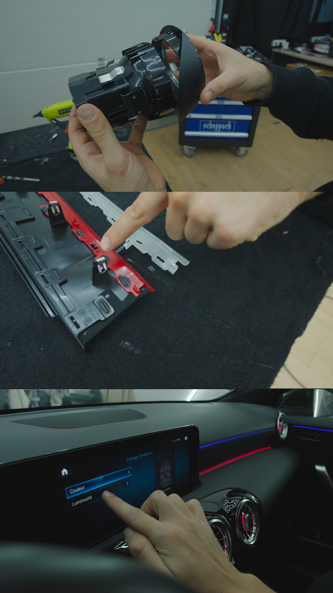 Il s'agit de l'étape principale, nous vous détaillons avec précision tous ce qu'il faut faire pour l'installation du kit d'éclairage d'ambiance.